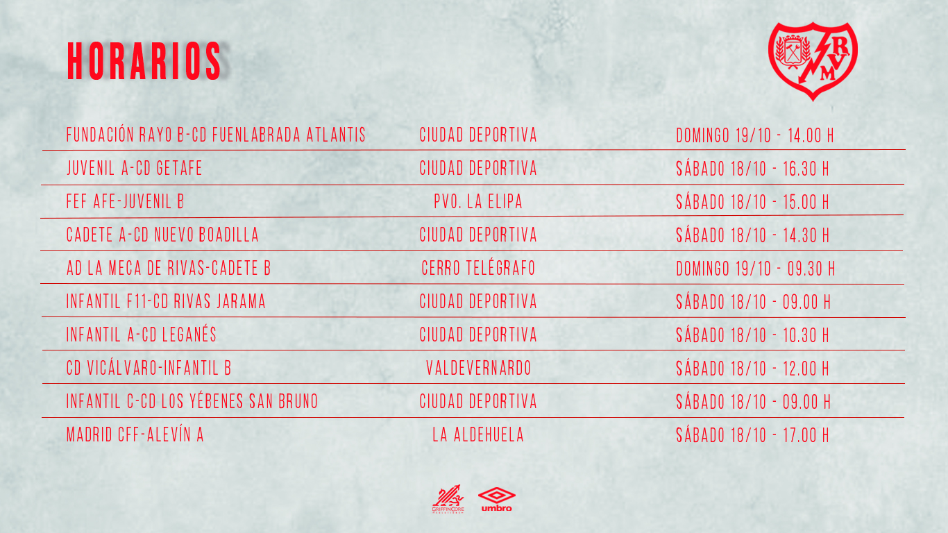 Horarios Fundación Rayo Femenino: 18-19 de octubre
