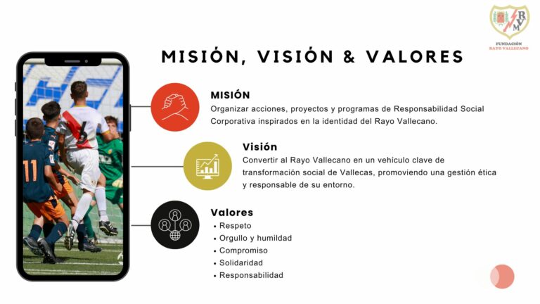 La Fundación Rayo Vallecano se constituyó el 6 de abril de 2001. Se trata de una entidad sin ánimo de lucro, inscrita con el número 558 en el Registro de Fundaciones dependiente del Ministerio de Justicia. Su ámbito de actuación es estatal y su funcionamiento está tutelado por el Protectorado único de Fundaciones que, a su vez, depende del Ministerio de Educación, Cultura y Deportes. Según consta en sus estatutos, el fin principal de la Fundación Rayo Vallecano – un fin de interés general, de acuerdo con los requerimientos que para las fundaciones tiene la legislación española – consiste en ayudar al Rayo Vallecano de Madrid, SAD, entidad fundadora, a promocionar la práctica del deporte en general, y el fútbol en particular, en todas sus categorías y edades. Nuestros estatutos señalan la necesidad de asociar la formación deportiva a la transmisión de los valores inherentes al deporte, así como procurar que esta formación vaya unida a la formación integral de la persona. Al ser una entidad sin ánimo de lucro, su patrimonio está afectado a la realización de los fines de interés general para los cuales fue constituida.